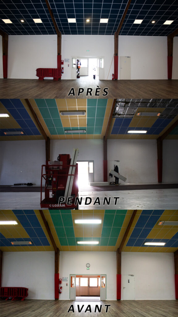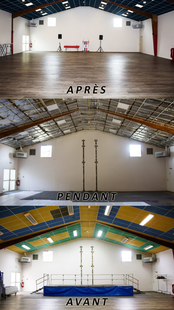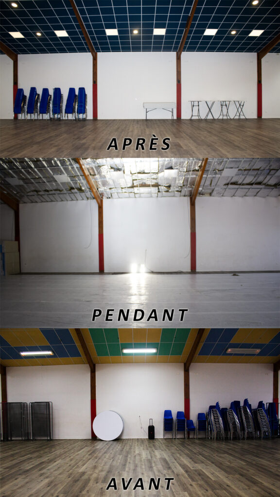 🙌Nous vous présentons les travaux réalisés à la salle Eugène Coudre : le sol, les murs ainsi que le plafond ont été entièrement rénovés. La salle est désormais encore mieux adaptée pour accueillir vos locations et événements.🙌